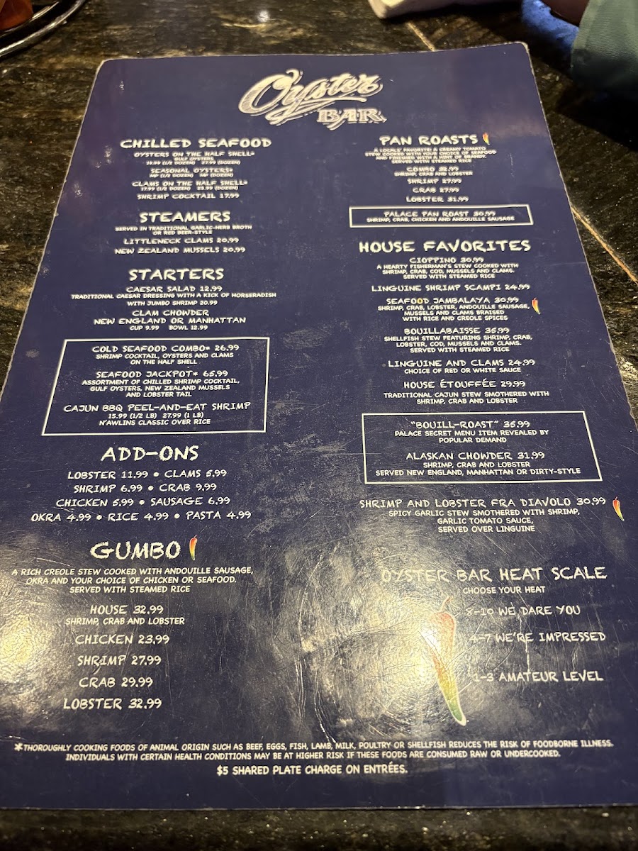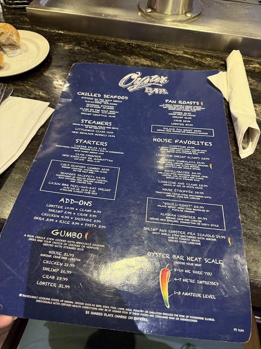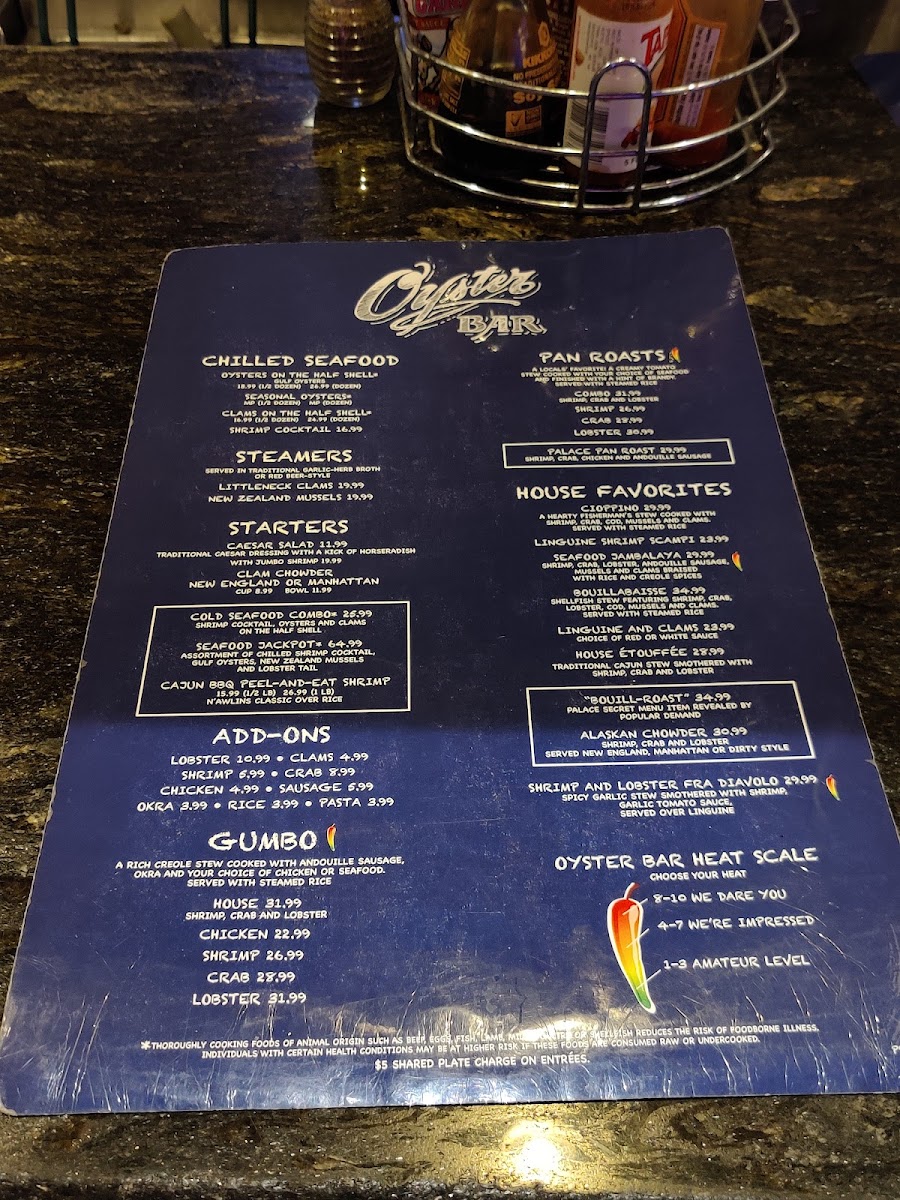 The Palace Station Oyster Bar Menu