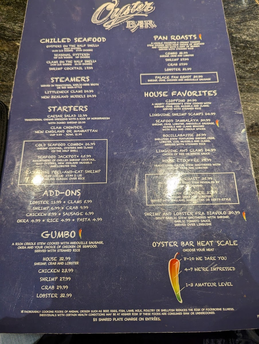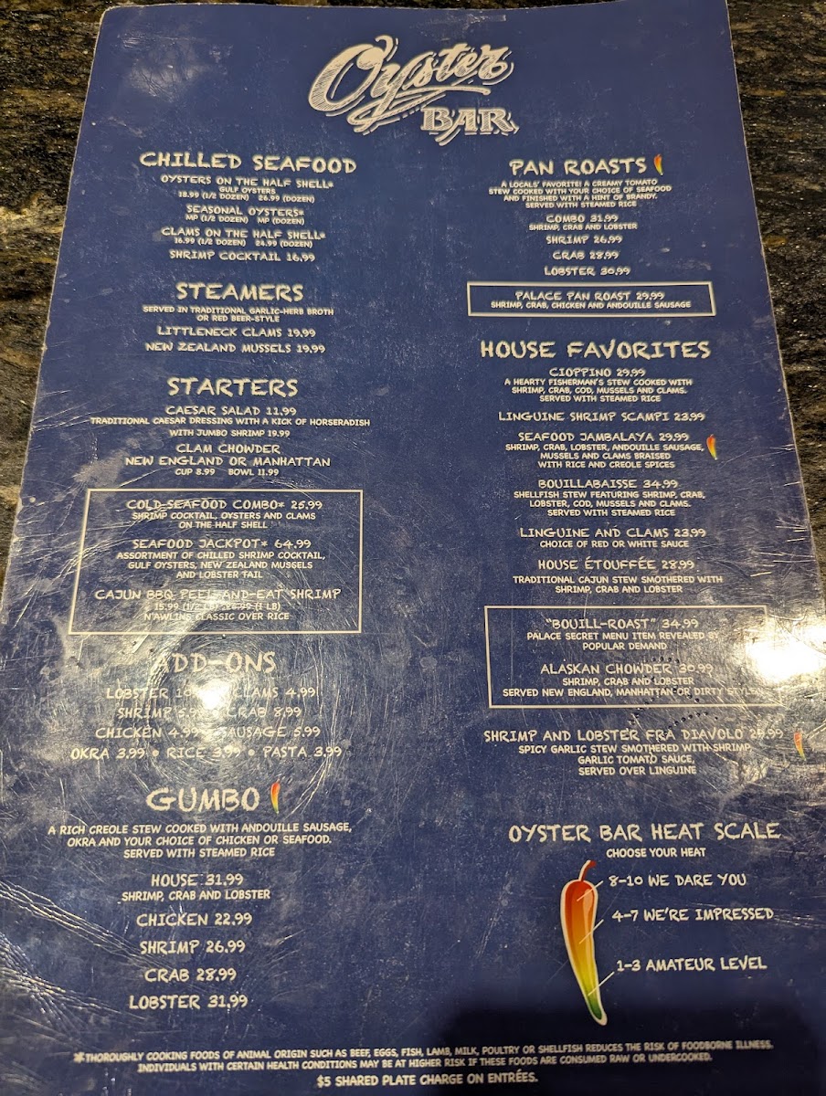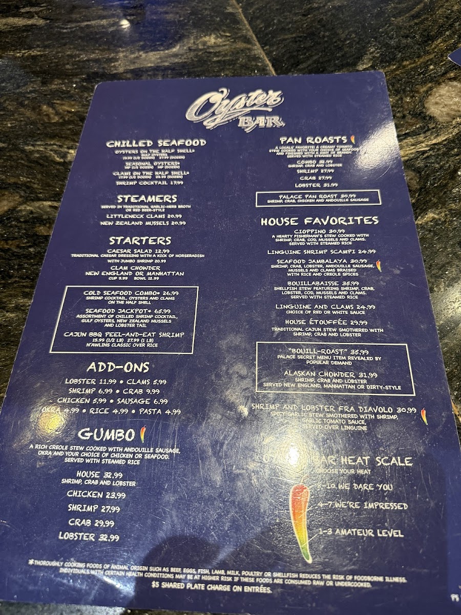 The Palace Station Oyster Bar Menu